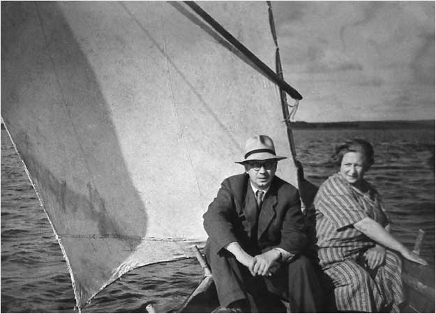 К.В. Чистов и Л.Я. Гинзбург на парусной лодке. Онежское озеро, конец 50-х – начало 60-х гг.