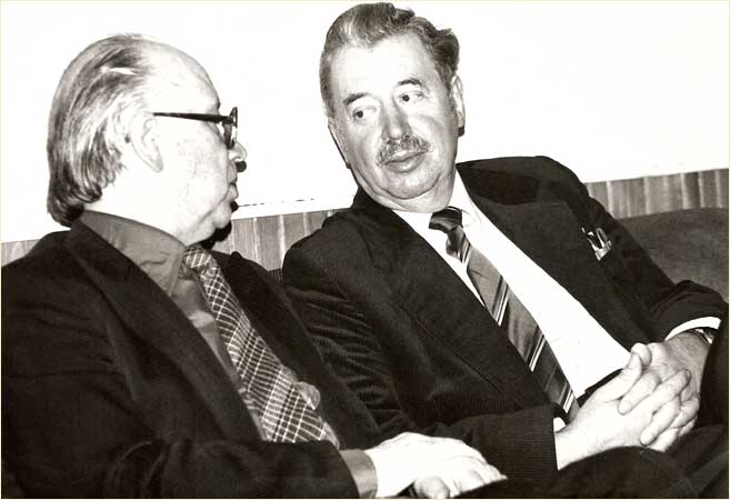 К.В. Чистов и проф. Р. Вайнхольд, редактор журнала “Demos”, на заседании редколлегии журнала “Ethnologia Europaea”, Матрафуред (Венгрия). Октябрь 1983 г.