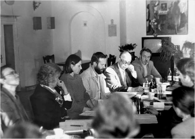 К.В. Чистов и другие члены Попечительского совета Музея В.С. Высоцкого. Москва, Театр на Таганке, сентябрь 1989 г.