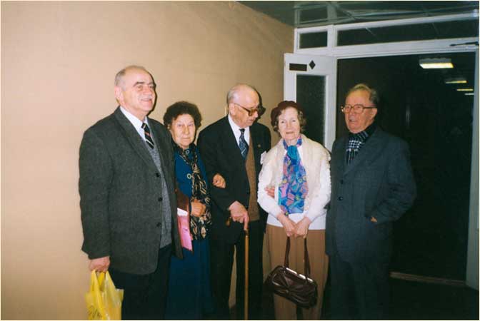 Во время Рябининских чтений. Слева направо: В.М. Гацак, А.С. Степанова, К.В. Чистов, У.С. Конкка, Э.С. Киуру. Петрозаводск, сентябрь 1999 г.